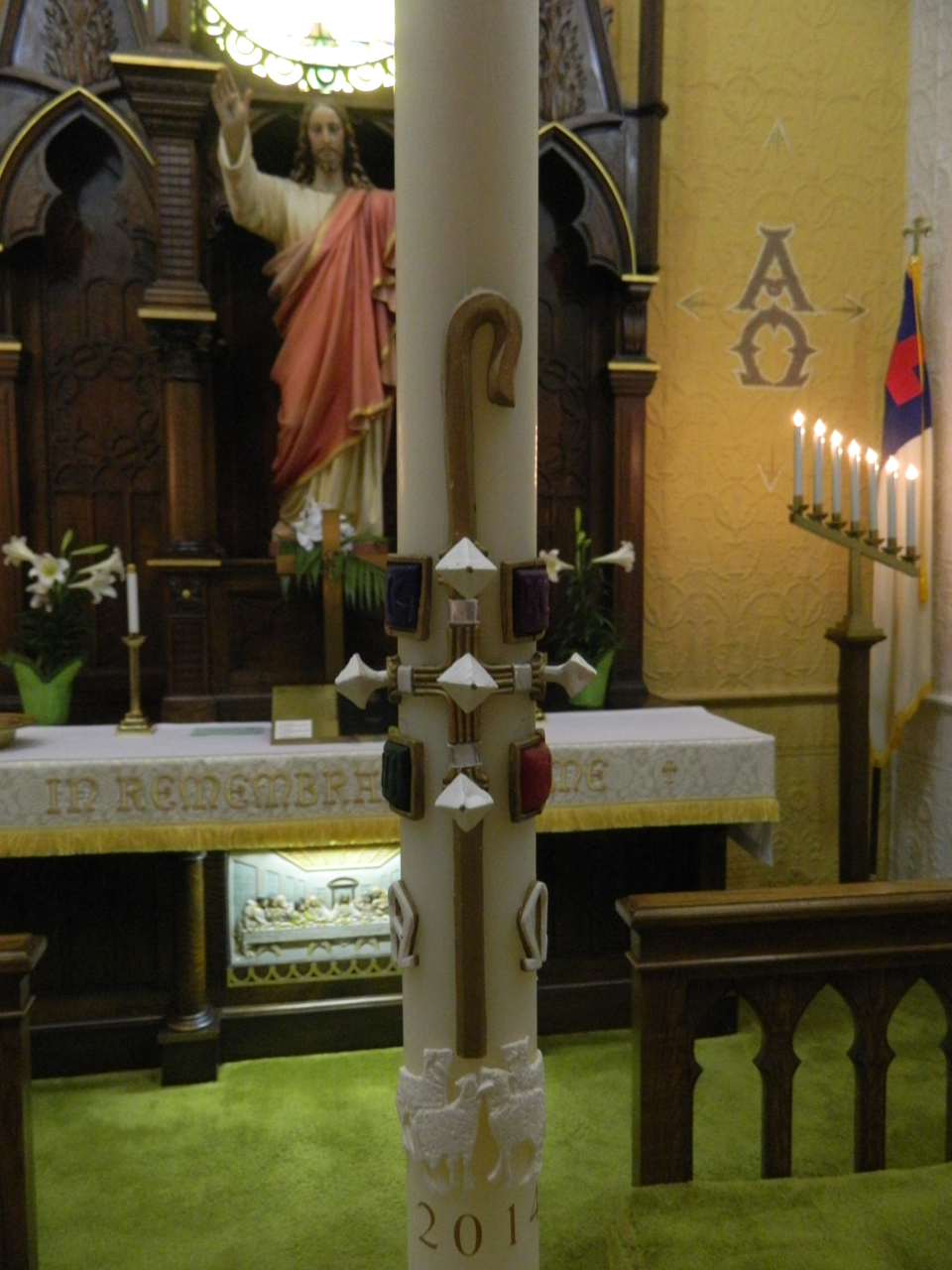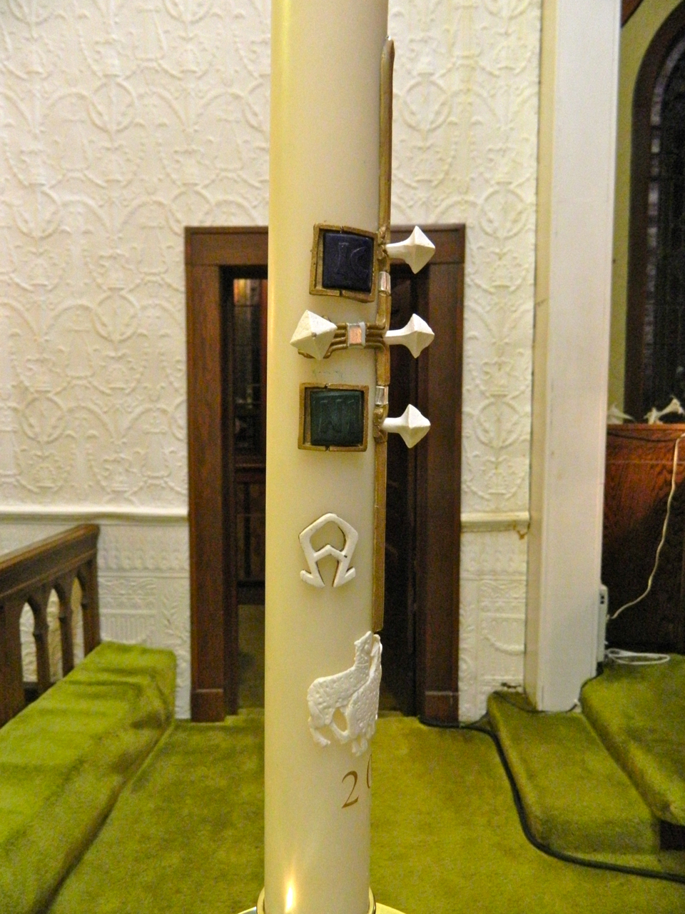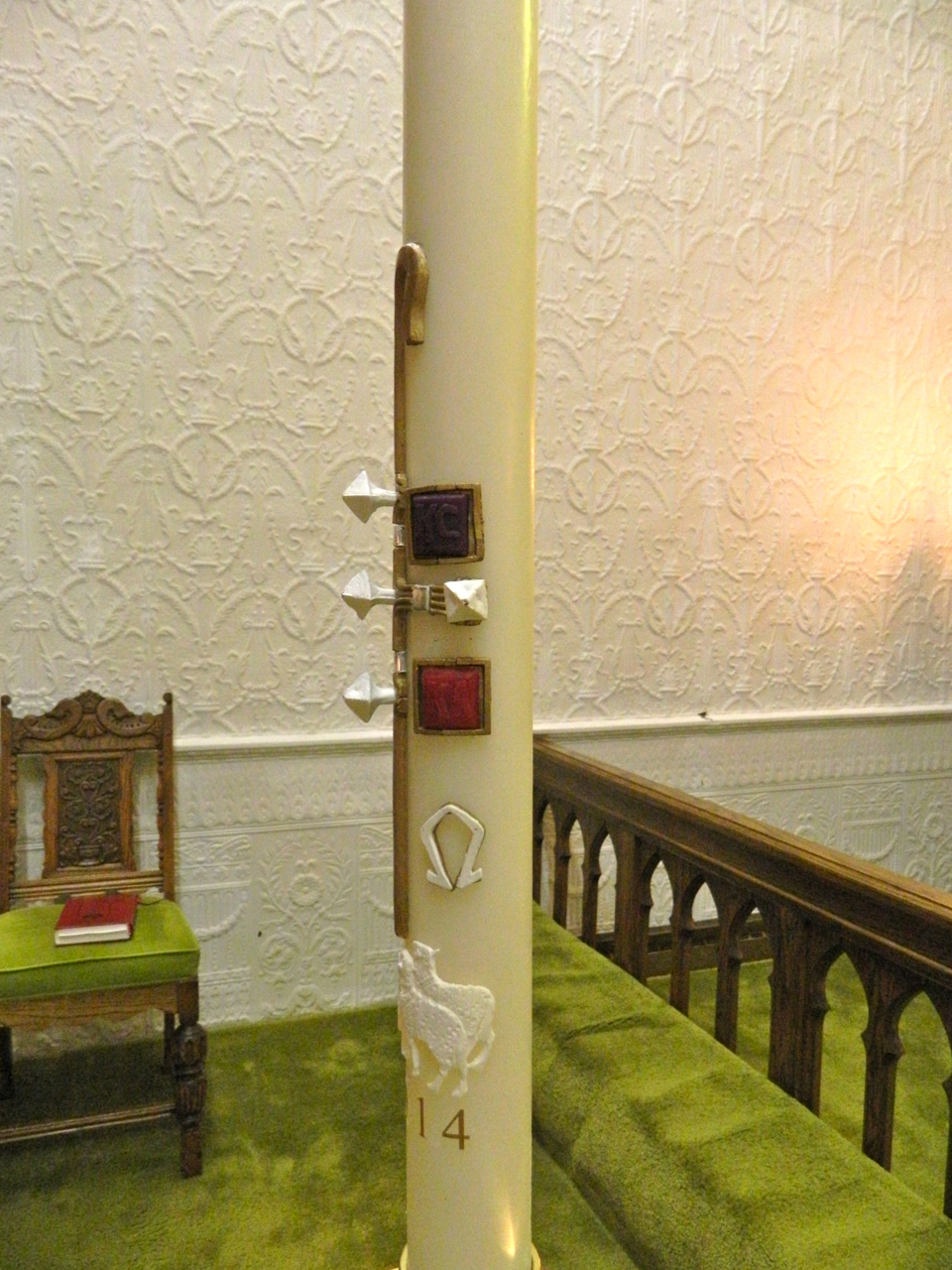 After the service, Pastor Biebert explained the history and significance of the paschal candle and Vigil of Easter, and also explained the symbolism on our particular candle and candlestick.