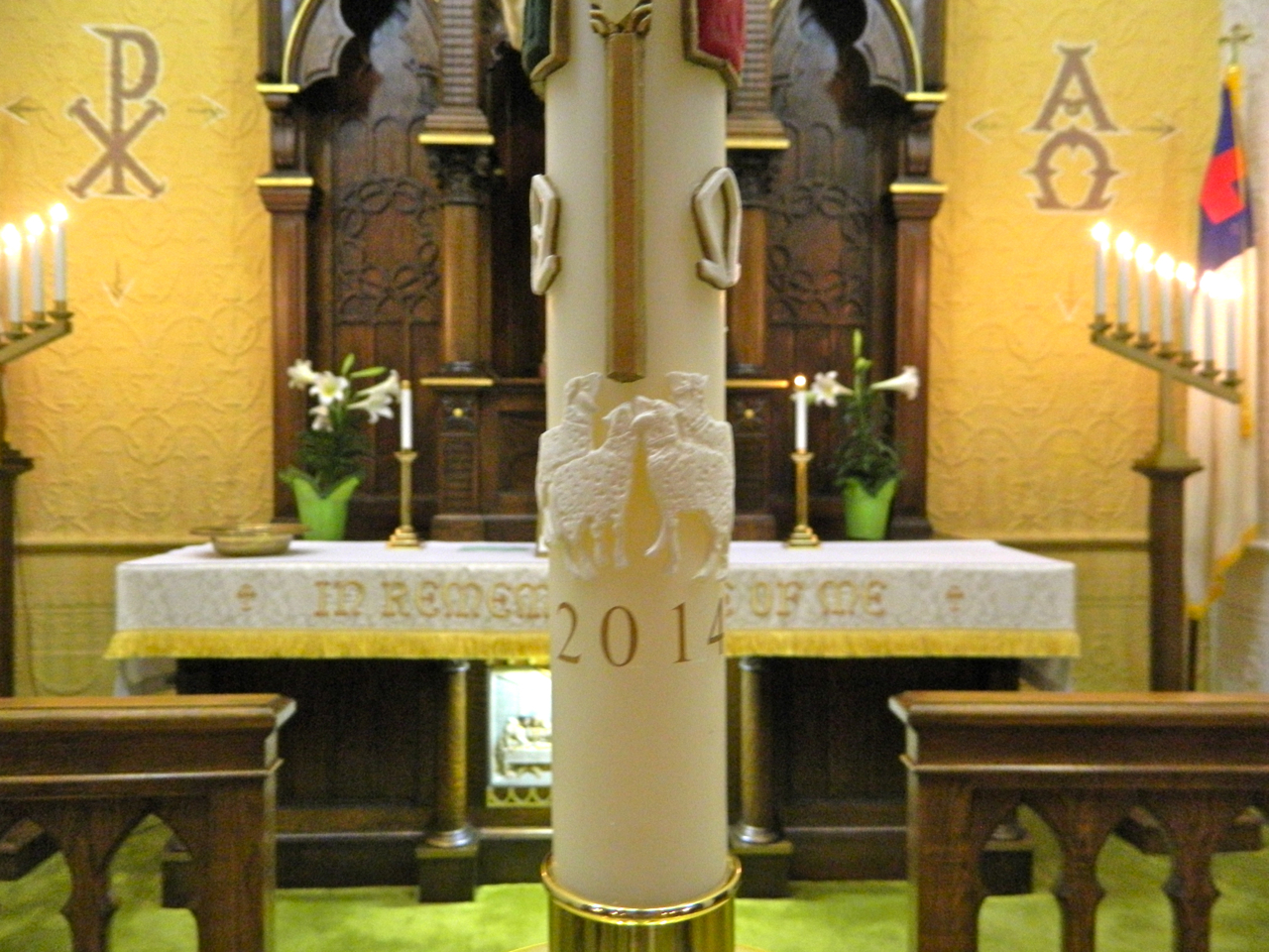 On Saturday, April 19, a new paschal candlestick and candle purchased by the members of St. Paul were dedicated to the glory of God in a special Easter Vigil service at 6:30 p.m. We asked God to use the paschal candle to “remind us continually that Jesus Christ is the Light of the world, the Light that shines in our hearts to give us the knowledge of the glory of God.” We also asked him to use the paschal candlestick, which has the words of 1 Corinthians 15:54-55 engraved on the steps of its base, to “remind us continually that, through Jesus’ innocent death and his triumphant resurrection from the dead, God the Father has given us the irreversible victory over sin and death through our Lord Jesus Christ.”