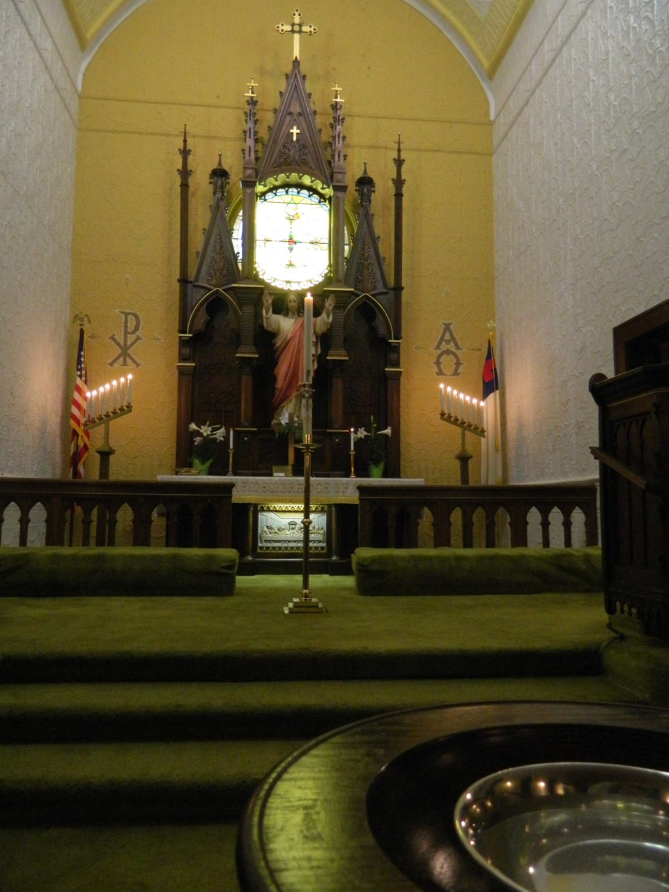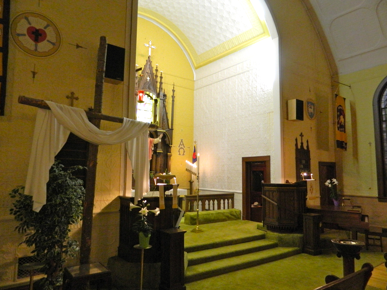 Once the candlebearer placed the paschal candle in its stand, the minister or a deacon chanted the Exsultet. This was the Service of Light, which was basically conducted in candlelight alone. This was followed by the Service of Lessons (the actual vigil, which invariably included the reading of Israel’s deliverance at the Red Sea), the Service of Holy Baptism (when all the candidates for membership were baptized), and the Service of Holy Communion. During the Service of Lessons and the Service of Holy Baptism, there was minimal lighting. For the service of Holy Communion, the altar candles and other candles in the church were lit from the paschal candle. The church was filled with light, the bells were rung, the minister called out, “Alleluia! Christ is risen!” and the congregation responded, “He is risen indeed! Alleluia!” In many cases, the minister’s cry was timed to occur as close to midnight as possible.