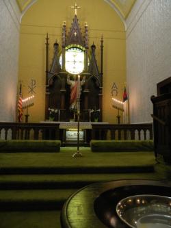 The candlestick of St. Paul is called the “Bethel Paschal Candlestick.” (“Bethel” is the name of the place where Jacob had the dream of the staircase reaching to heaven; the word means “house of God.”) It is made of polished brass (just like our altar candlesticks) and has an ascending three-tiered base (just like our altar candlesticks). It also has a pole, a shallow bobeche (boh-BESH) for catching the wax, and a 3-inch-tall candle socket with a 2-inch diameter. The total height from base to socket is 40-inches. (40 is a very significant number in the Bible. We might especially call to mind the 40 days and 40 nights that the floodwaters fell on the earth, since the flood is used as an illustration for baptism in the New Testament. Just as the floodwaters lifted up Noah and his family from the sinful world and kept them safe as the rain fell, so the waters of baptism deliver us from the sinful world and our own sinful flesh by uniting us with Christ’s death and resurrection.)